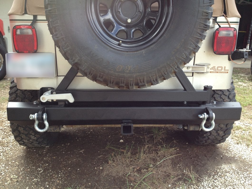 Perfect For Off-Road Use. Featuring a 2" standard hitch receiver, two high strength D-Ring mounts and a spare tire carrier the Barricade Off-Road Classic Rear Bumper is perfect for off-road use. Spare Tire Carrier. The Barricade Off-Road Classic Rear Bumper features a swing out spare tire carrier perfect for tires up to 37". A custom-designed billet aluminum handle securely locks the tire carrier in place so there is no worry of it coming loose on the trail.