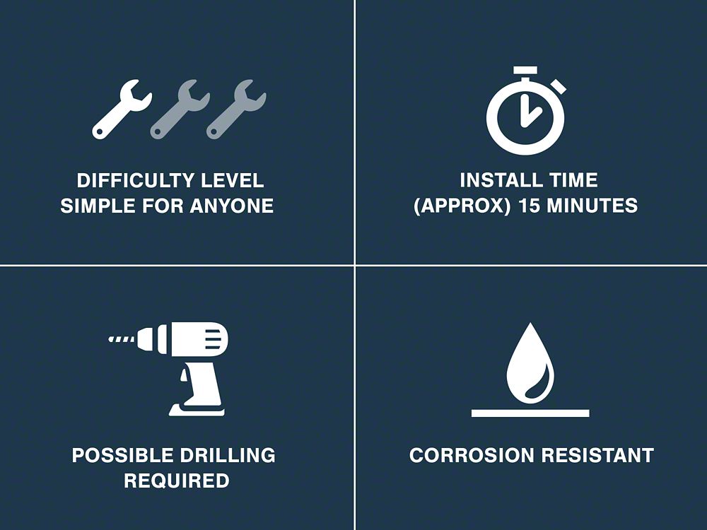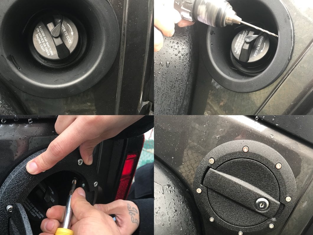 Easy Installation. Complete with all the required hardware, this Barricade Off-Road Locking Fuel Door easily installs in under 15 minutes with just basic hand tools. Some minor drilling may be required for installation.