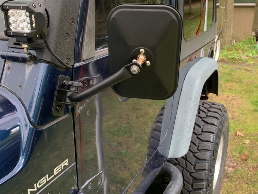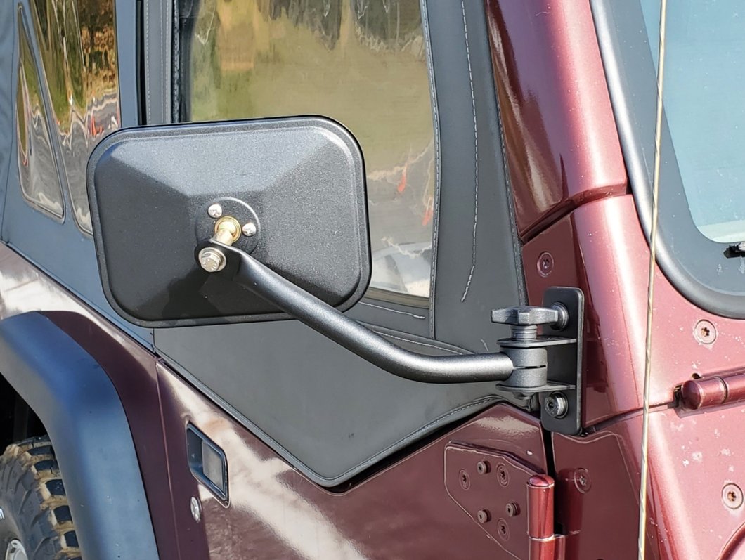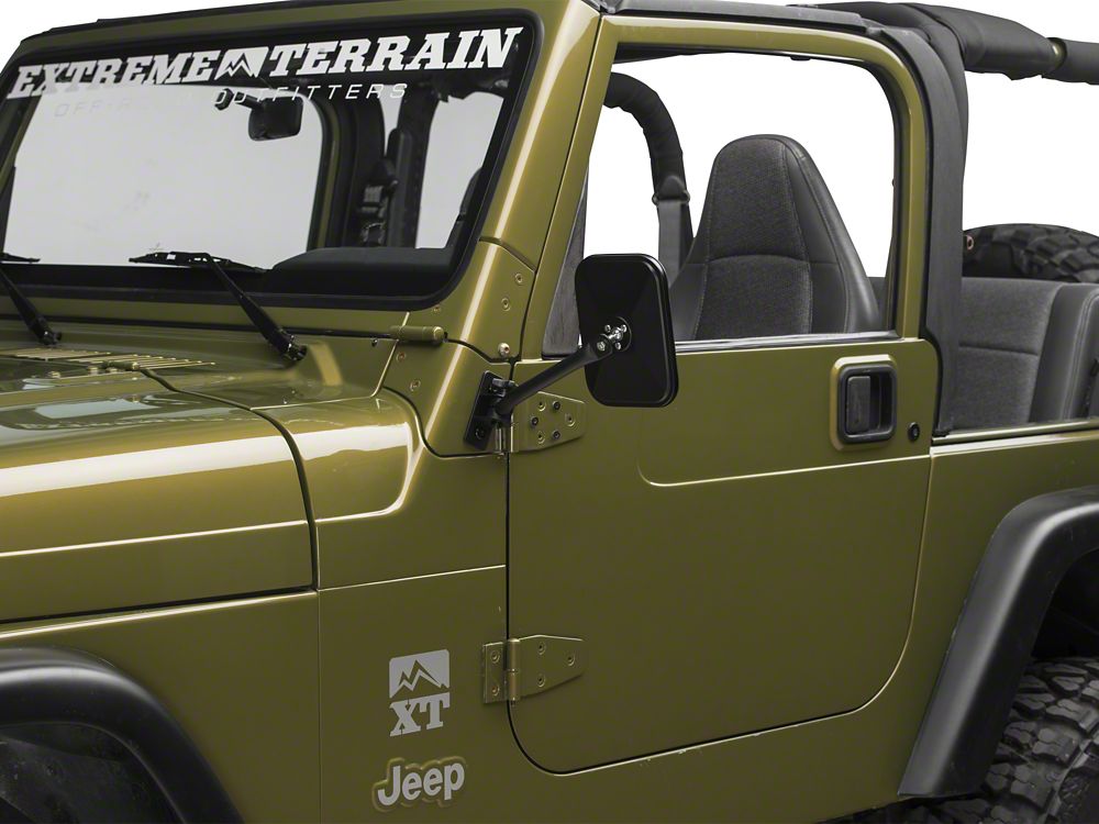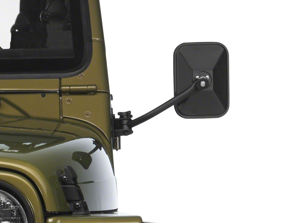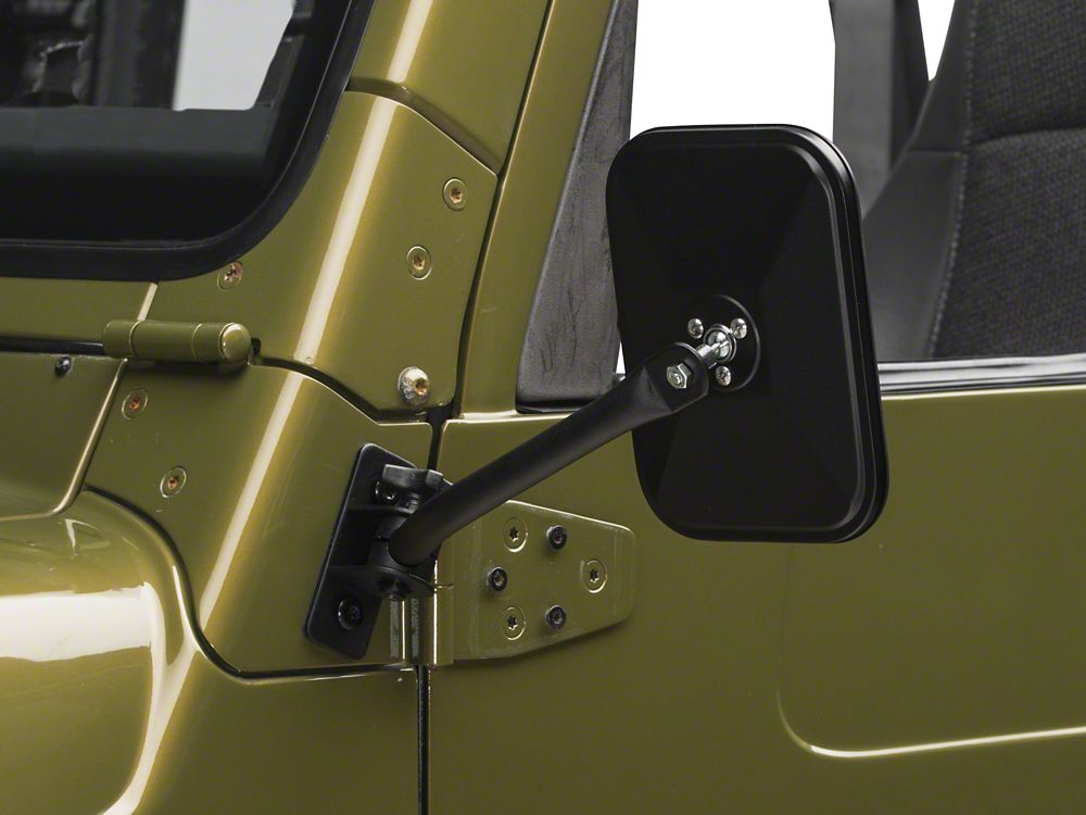 Easier Removal. When you want to cruise in your Jeep Wrangler TJ, the Barricade Quick Release Mirror Kit, Rectangular and in Textured Black, will help make things smoother. The whole process of door removal won't require hours of work thanks to this kit.