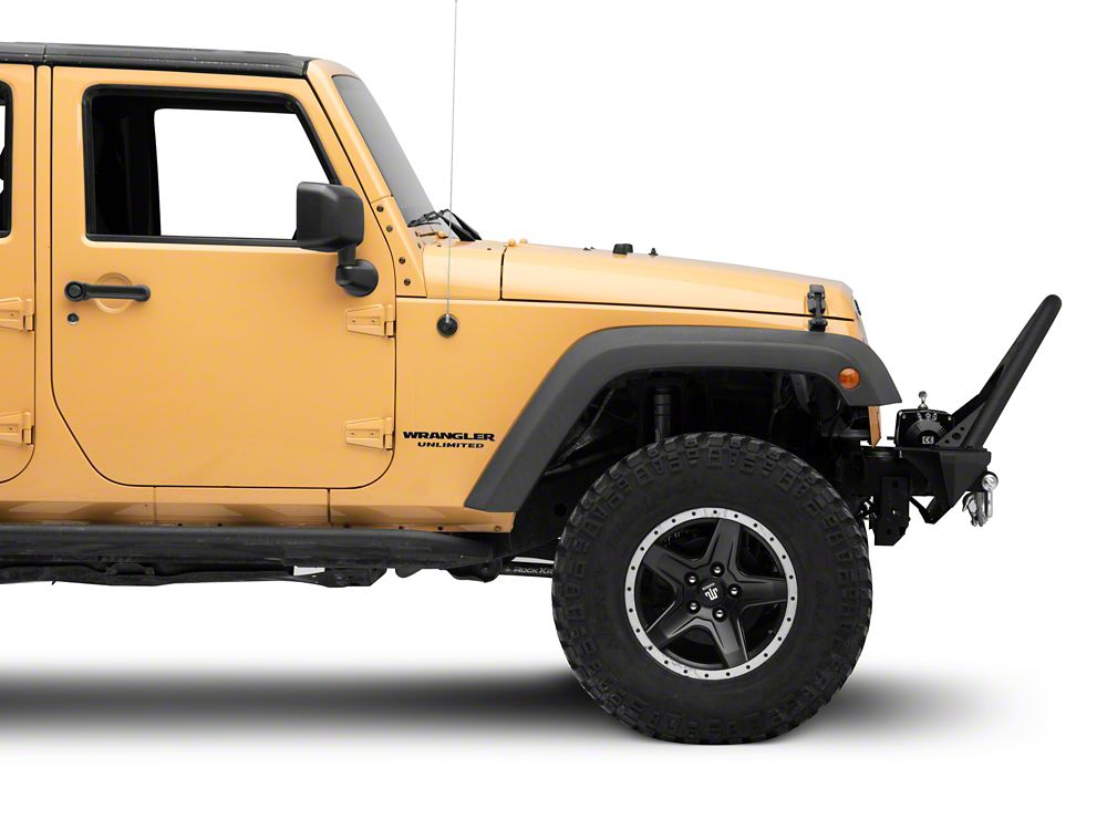 Solid Build Quality. This stubby winch front bumper starts as solid plates of high-quality steel before getting precision-cut and expertly welded to exact parameters. This combination of premium materials and advanced manufacturing produces a bumper assembly that’s extremely durable and fits your Jeep like a second skin. The stinger bar for its part is machined from thick-walled tubular steel to match the strength of the assembly. Rounding out its construction is a wear-resistant black powder coat finish, offering a stark style and superior corrosion protection.